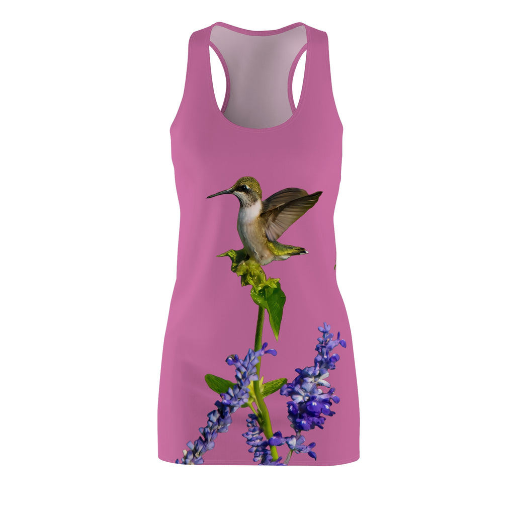 Hummingbird Lookout Neat Pink Women's Cut & Sew Racerback Dress (AOP)