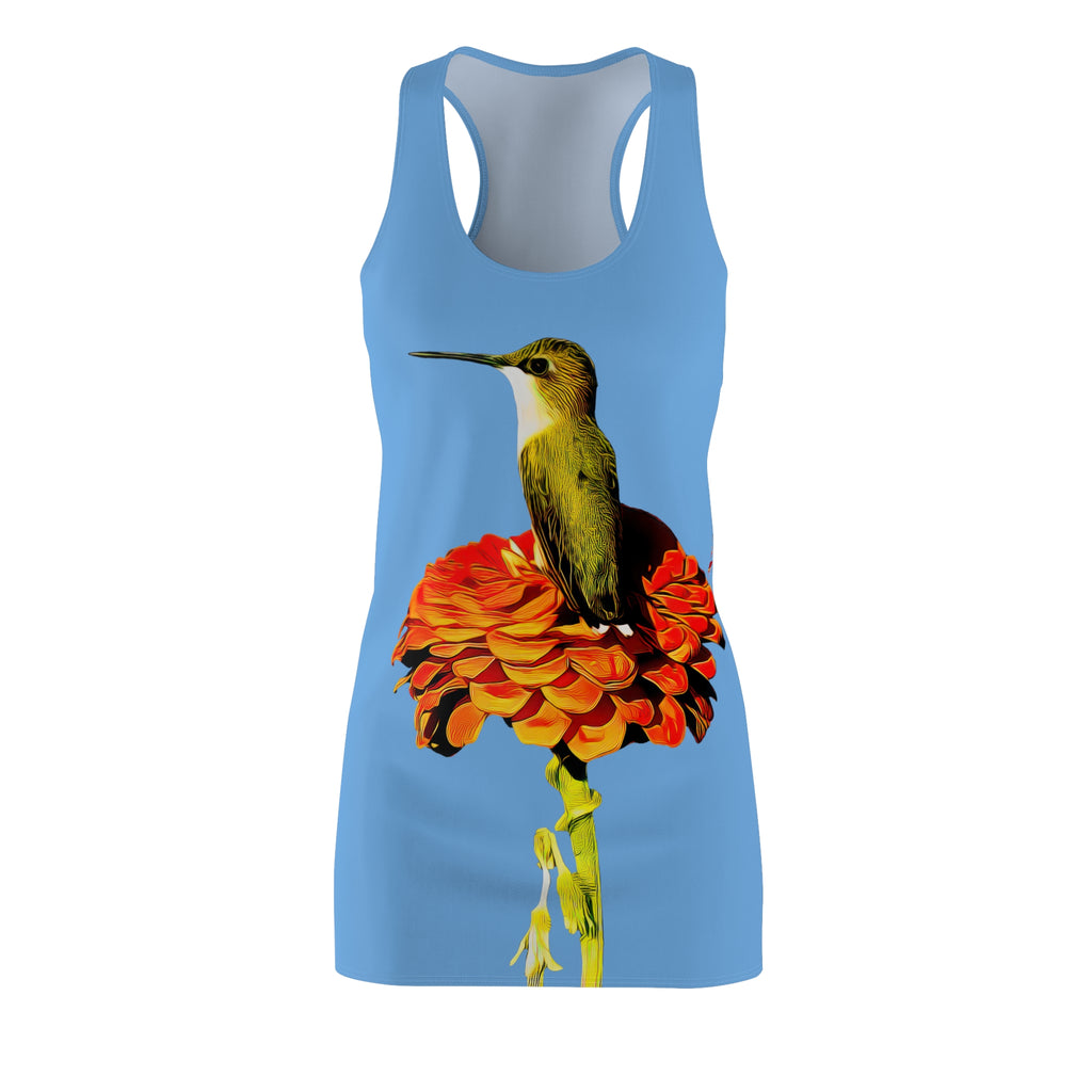 Hummingbird Orange Platform Blue Women's Cut & Sew Racerback Dress (AOP)