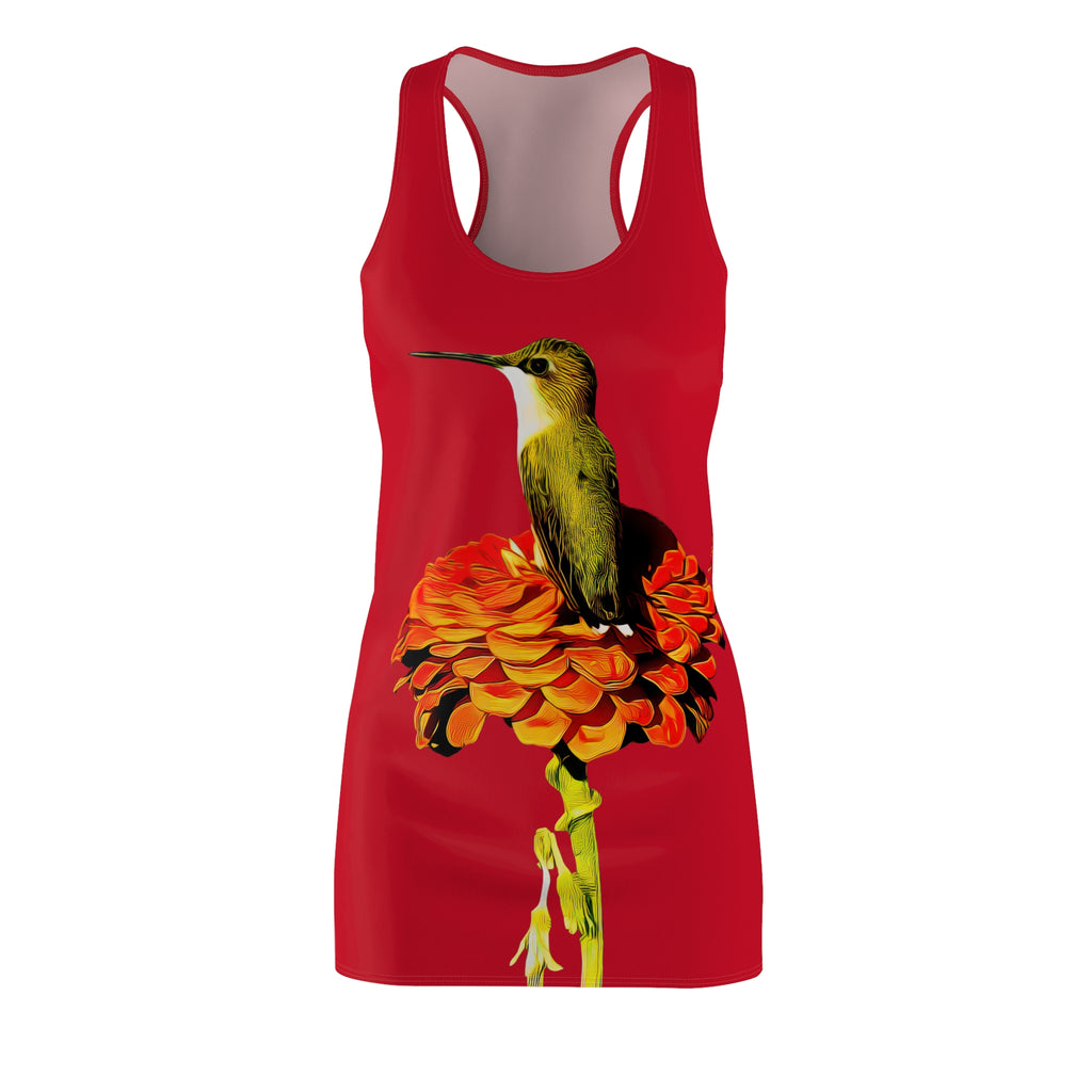 Hummingbird Orange Platform Red Women's Cut & Sew Racerback Dress (AOP)