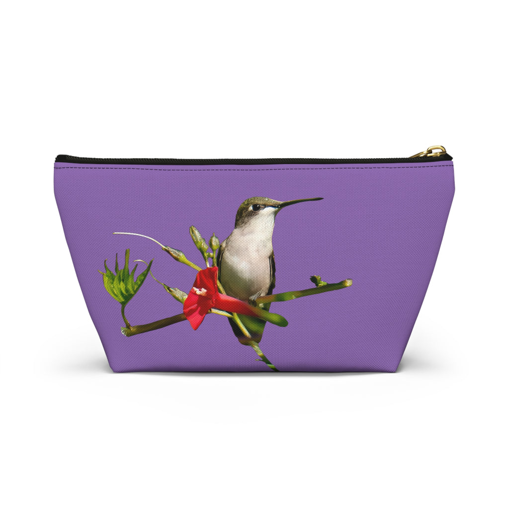 Hummingbird Red Bloom Day Purple Accessory Pouch w T-bottom