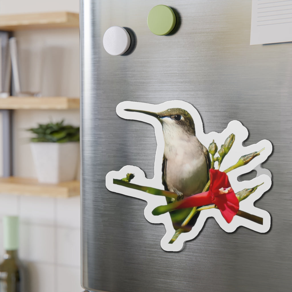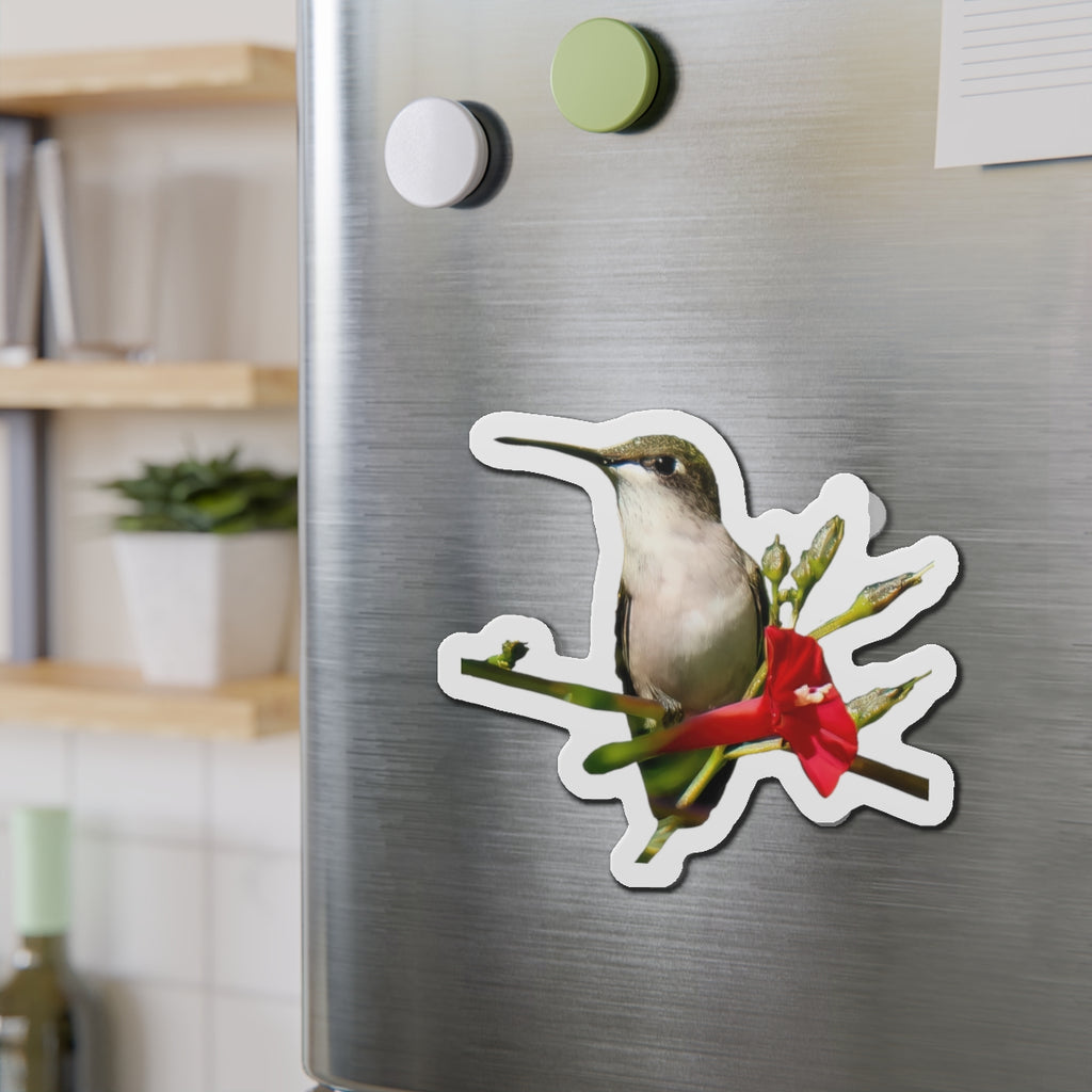 Hummingbird Red Bloom Die-Cut Magnets