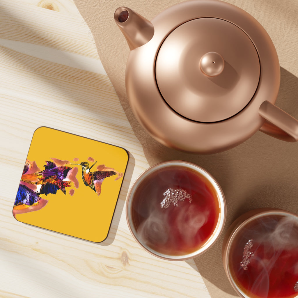 Hummingbird Violet Yellow Hardboard Back Coaster