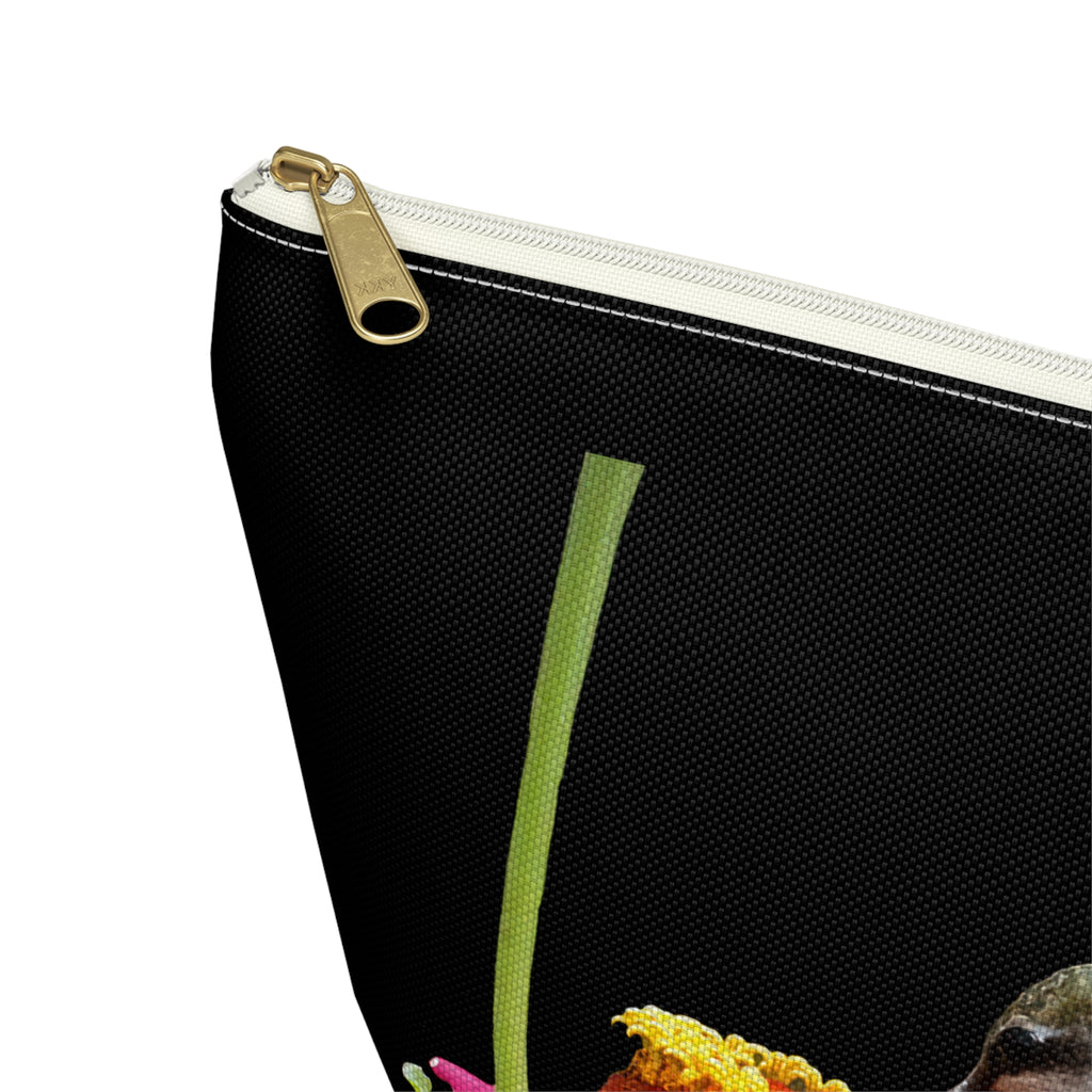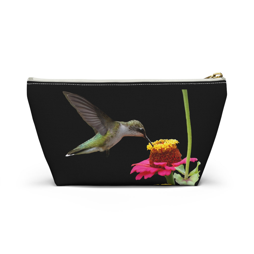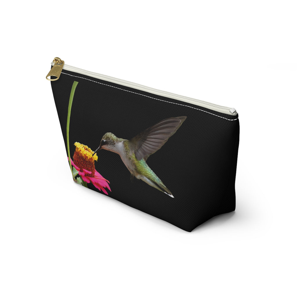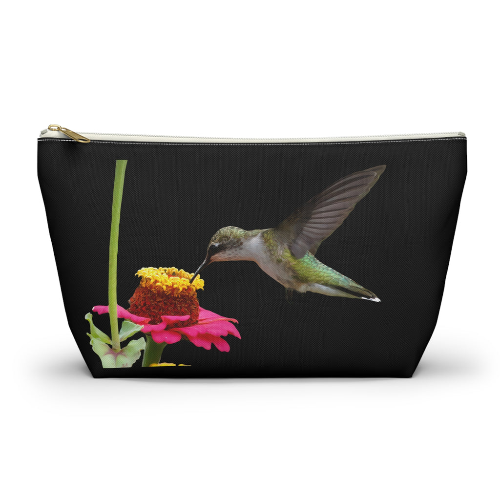 Hummingbird Zinnia Sip Black Accessory Pouch w T-bottom