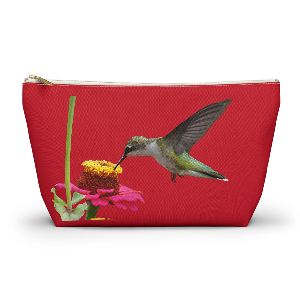 Hummingbird Zinnia Sip Red Accessory Pouch w T-bottom